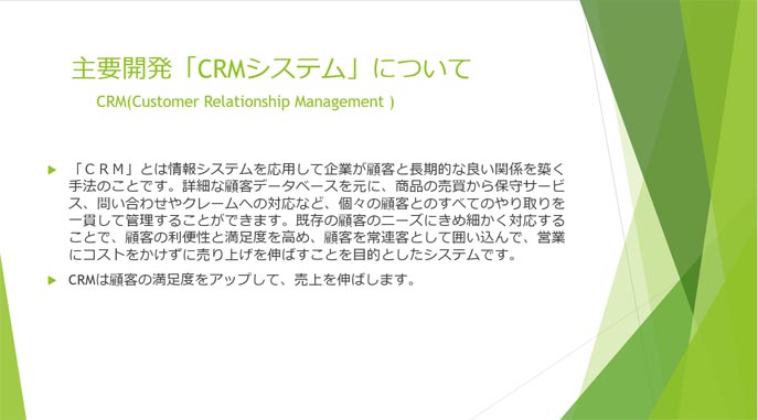 主要開発「CRMシステム」について