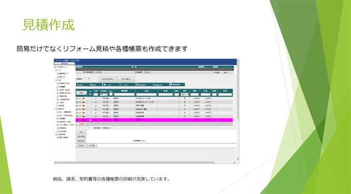 簡易だけでなくリフォーム見積や各種帳票も作成できます。