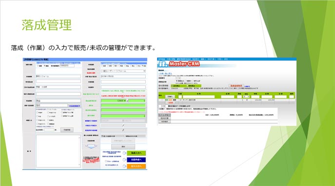 落成(作業)の入力で販売/未収の管理ができます。