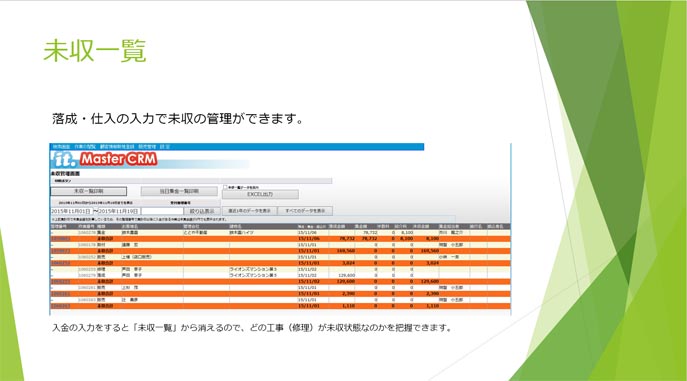 落成・仕入の入力で未収の管理ができます。